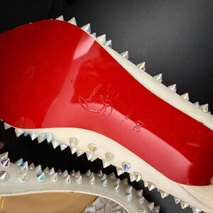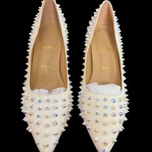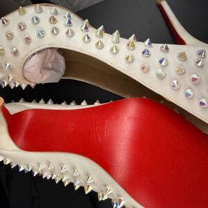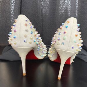 Christian Louboutin Follies Spikes 100 Pumps white patent leather heels covered in iridescent spikes. Brand New Never Worn. No Box Size 39 or 8 1/2
