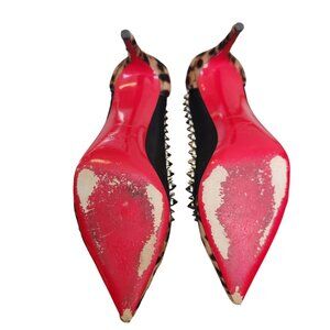 Christian Louboutin Galativi Spikes 85 Black Leopard Mesh Pointed Heel Size 8/38