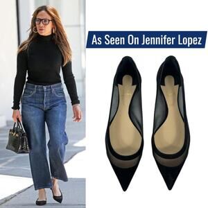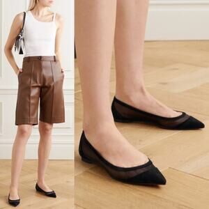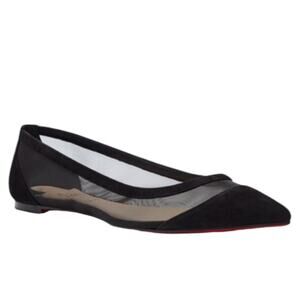 Christian Louboutin Galativi Suede Mesh Pointed Toe Flats Black Size 37
