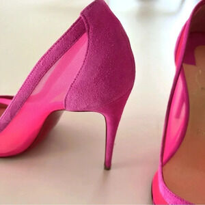 Christian Louboutin Galaviti 100 hot pink mesh suede heels. Pointed toe. Size 38.5