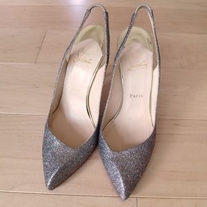 100% Authentic. Slightly worn, in excellent condition. Stamped size 38.5, but ran small, narrow front. Will fit US 7/7.5. To ensure fit, recommend trying similar 100mm heel sling back for sizing. Please ask any and all questions. I cannot accept returns due to sizing. Retail $795 plus tax.