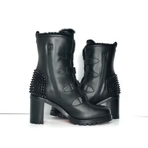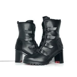 Christian Louboutin Glorymount 70 Spike Buckle Detail Lug Sole Boots 38.5