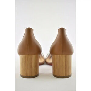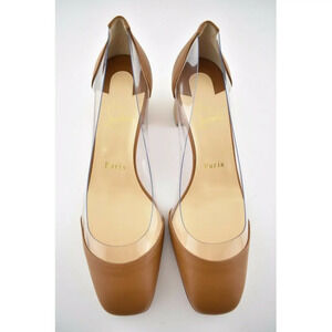 Christian Louboutin Grandola 55 Brown Leather PVC Bois Block Heel Sandal Pump 37
