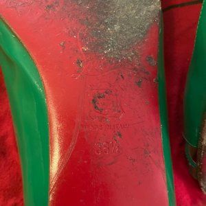 Christian Louboutin - Green Patent - peep toe flats - sz 38.5 - AUTHENTIC