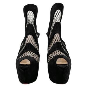Christian Louboutin Guizi 160 Black Suede & Mesh Platform Booties – Size 38