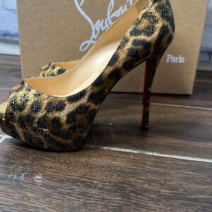 👠Christian Louboutin Heels Print Lady Claude Peep Toe Leopard Pumps Size 36