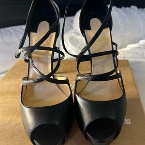 Christian Louboutin Holly Alta 120 Nappa Black Strappy Peep Toe Heels Size 39.5