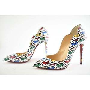 Christian Louboutin Hot Chick 100 Patent CL 3D Black White Red Heel Pump 36
