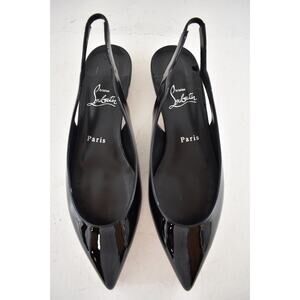 Christian Louboutin Hot Chickita Sling Flat Black Patent Slingback Ballet 38.5