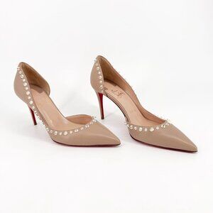 Christian Louboutin Irishell 85 Beige Leather Spike Pumps Heels Size 37.5 US 7.5