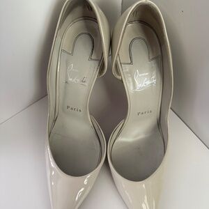 Christian Louboutin Iriza 100 Craie White Grey Patent Leather Heel Pump 39.5