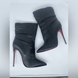Christian Louboutin Ishtar Black Leather Mid Calf Pointed Stiletto Heels Boots