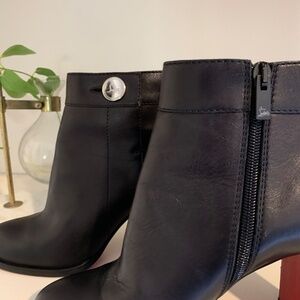 Leather boots are in excellent condition, heel in excellent condition. The front sole has paint wear from a gravel