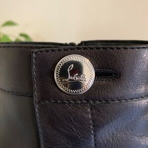 driveway. Like all Christian Louboutin soles, over time the red painted soles will need to have paint re-applied. Or a red rubber sole attached from a Respected shoe repair. The Christian Louboutin website has two shoe repairs in New York City or LA, which are authorize. But, I have heard many customers buy the closely match red shoe paint, which is found on line and have your local shoe repair store apply. The arch with the famous signature is in excellent condition.