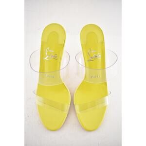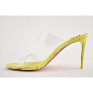 Christian Louboutin Just Nothing 85 Citrus Yellow PVC Sandal Mule Heel Pump 37