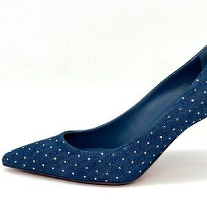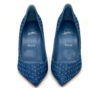 Christian Louboutin KATE PLUM STRASS 85 Crystal Denim Heels Pumps Shoes