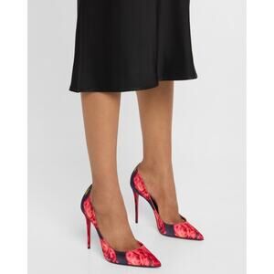 Christian Louboutin Kate 100 Crepe Satin Roses Red Blue Pointed Heel Pump 39.5