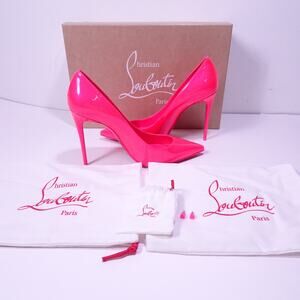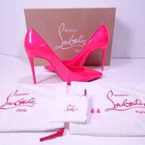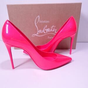 Christian Louboutin Women's Kate 100mm Patent Leather Pumps Neon Pink Sz 37.5 NIB 1800
