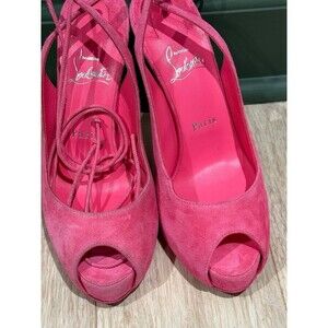 Christian Louboutin LACE UP 120 Suede Platform Heels Sandals Shoes 38 $995