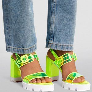 Christian Louboutin LOUBI DUNISS LUG 100 PVC Patent Platform Heels Sandals Shoes
