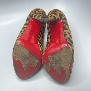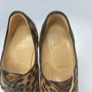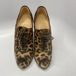 Elevate your style with these stunning Christian Louboutin Lady Derby 120 ankle booties. The lace-up closure and ankle shaft style create a fashion-forward look that is perfect for any occasion. The animal print calf hair leather upper material gives these booties a touch of glamour that is sure to turn heads.