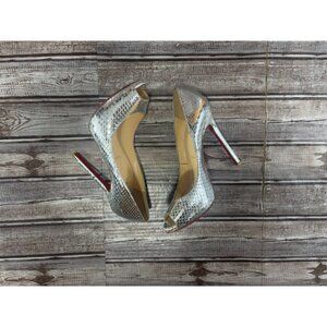 Christian Louboutin Lady Peep python snakeskin silver metallic hells shoes sz 36