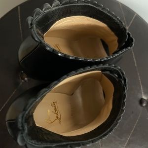 Authentic and a true work of art; these Christian Louboutin peep toe booties will garner you attention and admiration wherever you go... Originally purchased in 39.5, found them too tight so got these 40s… the 39.5 ended up being a better fit for me. Men seem to looovvvvee these shoes; I receive compliments on them all the time (gay, straight, young & old 🤣) Wore this pair once. Originally $1245 or $1295.