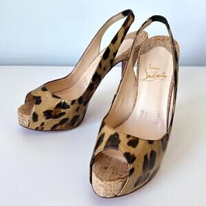 Christian Louboutin Leopard Cork Slingback Heels Size 36.5