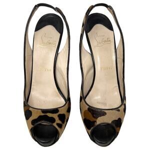 Christian Louboutin Leopard Slingback Heels 40.5 Calf Hair Peep Toe Red Sole