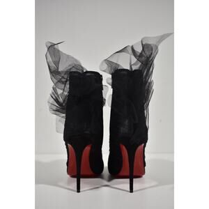 Christian Louboutin Libellibooty 100 Black Mesh Tulle Ankle Boot Heel Pump 39