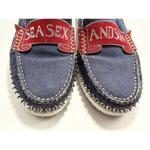 Christian Louboutin Loafers "Sea Sex and Sun" Red & Blue Denim Spikes Sz 35 5