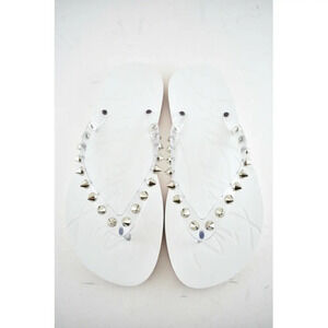 Christian Louboutin Loubi Flip Spikes Donna Flat White Thong Flip Flop Sandal 41