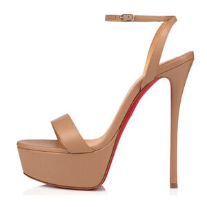 Christian Louboutin Loubi Queen Alta 150 Nude Ankle Strap Sandal Heel Pump 39.5
