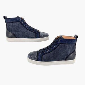Christian Louboutin Louis Strass Sneaker Size 39 US 9 Navy Blue High Top Crystal