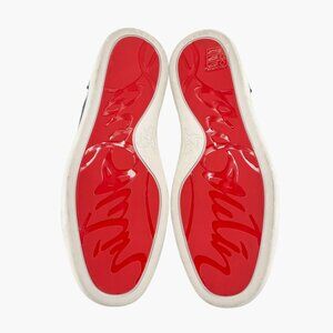 These Christian Louboutin Louis Strass sneakers bring a dazzling upgrade to a classic silhouette. The high-top design features a shimmering navy fabric upper with suede trim, leather heel, and a fully crystal-embellished cap toe for a luxe, light-catching finish. Grounded by a flat rubber outsole and signature red bottom, they combine standout style with everyday wearability. Perfect for elevated streetwear looks, designer travel fits, or dressing up casual evenings.
