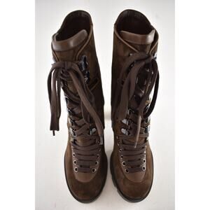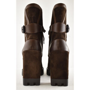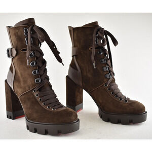 Christian Louboutin Macademia 100 Brown Platform Block Heel Combat Boot 37