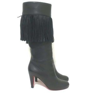 . Christian Louboutin Majung Fringe Boots Black Leather Size 35.5