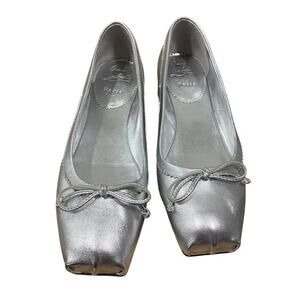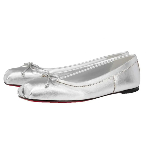 Christian Louboutin Mamadrague Ballerina Ballet Flat Shoes Metallic Silver 37