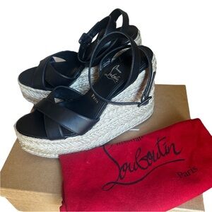 Christian Louboutin Mariza zeppa 130 black leather wedges RETAIL 945