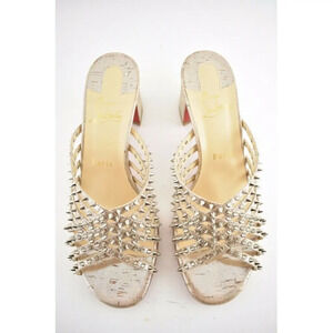 Christian Louboutin Marthaspike 55 Silver Open Sandal Mule Block Heel Pump 36.5