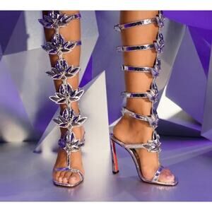Christian Louboutin Marvel Sea Warrior Silver Gladiator Metallic Stiletto Sandals