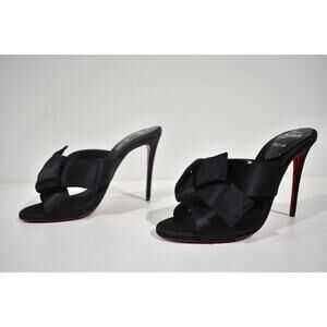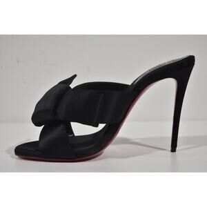 Christian Louboutin Matricia 100 Black Satin Bow Backless Sandal Heel Pump 36