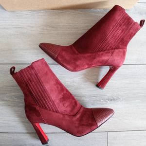 Christian Louboutin Me In The 90s Maroon Suede Booties 37.5