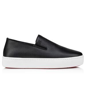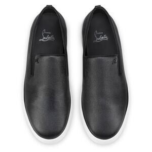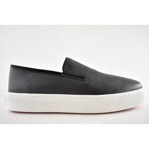 Christian Louboutin Men Boatissimo Flat Black Leather Slip On Sneakers 44.5 11.5