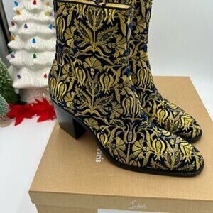 Step out in style with these Christian Louboutin LOUBI mystery OMERIC velvet boots. These boots are absolutely new, never worn, and come with the original box. A true statement piece, these boots originally retailed for over $2500.