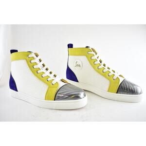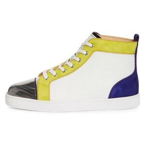 Christian Louboutin Mens Louis Orlato Flat White Yellow High Top Sneaker 43 10
