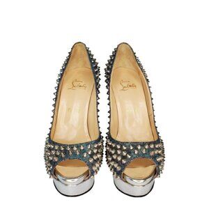Christian Louboutin Metallic Lady Peep Spikes 150 Pumps. Size 38.5 (US 8.5). Pre-owned condition!