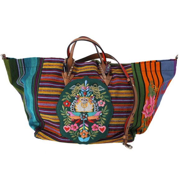Christian Louboutin Mexicaba Tote Bag Green Orange Multi Jacquard Felt Leather