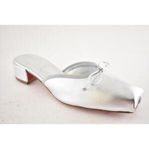 Christian Louboutin Mimiflirt 30 Silver Ballet Ballerina Slide Heel Mule 37.5