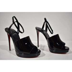 Christian Louboutin Miradona 120 Black Patent Ankle Strap Sandal Heel Pump 37